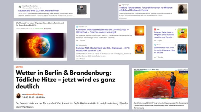 Tödliche Hitze — die Menschen reagieren zunehmend allergisch auf derartige Meldungen. Das wird sich auch negativ auf die Akzeptanz der Klimapolitik auswirken.