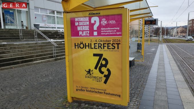 Die Stadtverwaltung macht auf die Reklameflächen an Fahrgastunterständen als eine hochwertige und aufmerksamkeitsstarke Werbeform im öffentlichen Raum aufmerksam. Beschrieben werden sie als feste Bestandteile zahlreicher Bus- und Bahnhaltestellen, die täglich eine hohe Anzahl an Fahrgästen und Passanten erreichen. Zuständig für die sogenannten City-Light-Flächen ist die Stadt Gera selbst, die auch als Ansprechpartner für die Buchung der Werbeflächen fungiert.