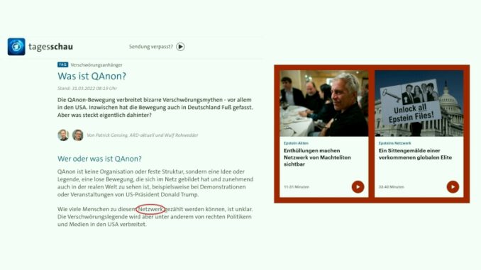 Als sich die Tagesschau am 31. März 2022 der Q-Anon-Verschwörungstheorie annahm, geschah das aller Wahrscheinlichkeit nach mit der Intention, die Ausbreitung rechtsextremer Narrative stoppen zu wollen. Der Bericht hat einen sehr schmalen Betrachtungswinkel, bewegt sich innerhalb des bekannten Rechts-Links-Antagonismus und wirkt wie ein Gegenangriff im Kampf um die Deutungshoheit. Dass Verschwörungstheorien auch etwas Wahres enthalten könnten, vielleicht auch nur sehr wenig, dafür aber bedeutsame Verquickungen und hochkriminelle Verstrickungen, wird überhaupt nicht in Erwägung gezogen. Was aus einer bestimmten Ecke herausgerufen wird, ist nach Auffassung dieser Leute also grundsätzlich immer falsch — weil eben alles falsch ist, was aus dieser Richtung kommt oder gewisse Ähnlichkeiten mit dortigen Erzählungen aufweist.