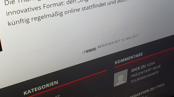 Im Jahr 2025 bewegte sich der Besucherzähler von 950’433 auf 1’670’213. Somit hatte das Magazin „Gera — Berichte, Bilder, Kommentare“ durchschnittlich 1972 Besucher pro Tag. Das ist eine weitere Steigerung gegenüber den vergangenen Jahren. An 14 Tagen gab es sogar mehr als 10’000 Besucher. Der höchste Tageswert wurde am 21. Oktober 2025 mit 18’496 Aufrufen erreicht. Gemessen wurden nur die Zugriffe auf die Startseite, nicht auf einzelne Beiträge.