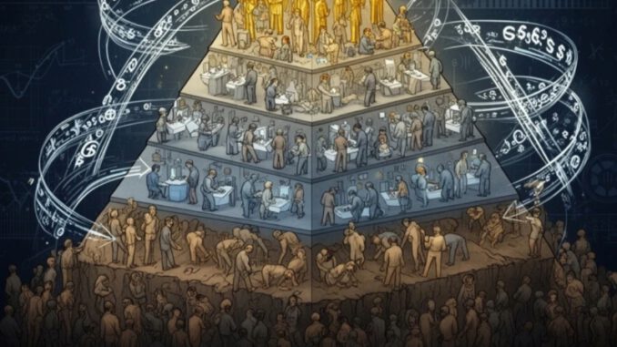 Das Bild von miteinander konkurrierenden Wachstumssystemen nach dem Ponzi-Schema stellt die wirtschaftliche Realität treffender dar als Modelle, die verschiedene, ineinandergreifende Kreisläufe aufzeigen. Denn letztere suggerieren, dass alles harmonisch weitergehen könnte wie in früheren Tagen, wenn das Gleichgewicht durch kompetente Entscheidungsträger wieder hergestellt ist. Doch ein solches Gleichgewicht gibt es nicht. Die Wirtschaft ist ein pyramidales System, das Armut ausnutzt und die Konzentration des Kapitals zur Spitze hin erhöht. Es besteht nur, solange es wachsen kann, und muss schneller wachsen als konkurrierende Systeme, um nicht vereinnahmt zu werden.